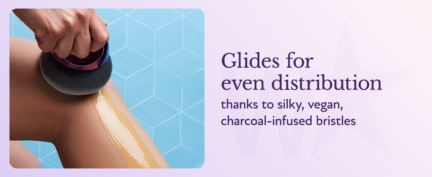 For seamless application and a natural-looking, skin-like finish every time, this is the perfect tool. Blend & Blur Body Brush is specifically engineered to enhance the way you apply Body Coverage Perfector: an oversized, oval-shaped brush head allows for efficient coverage, and a comfortable handle ensures easy accessibility to even the hardest-to-reach places. What makes our brush especially unique is the velvety, densely-packed bristles. Vegan, charcoal-infused fibers evenly disperse product, hugging every curve for flawless coverage across your décolleté, arms, back and legs.