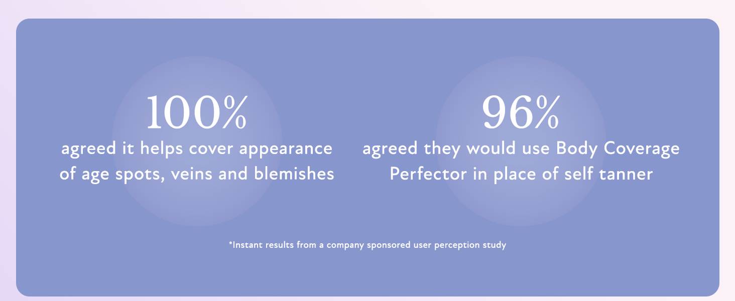 - For hard-to-conceal areas, first use Body Coverage Perfector as a concealer, then once dry apply a second layer to the entire area to blend into your skin tone.